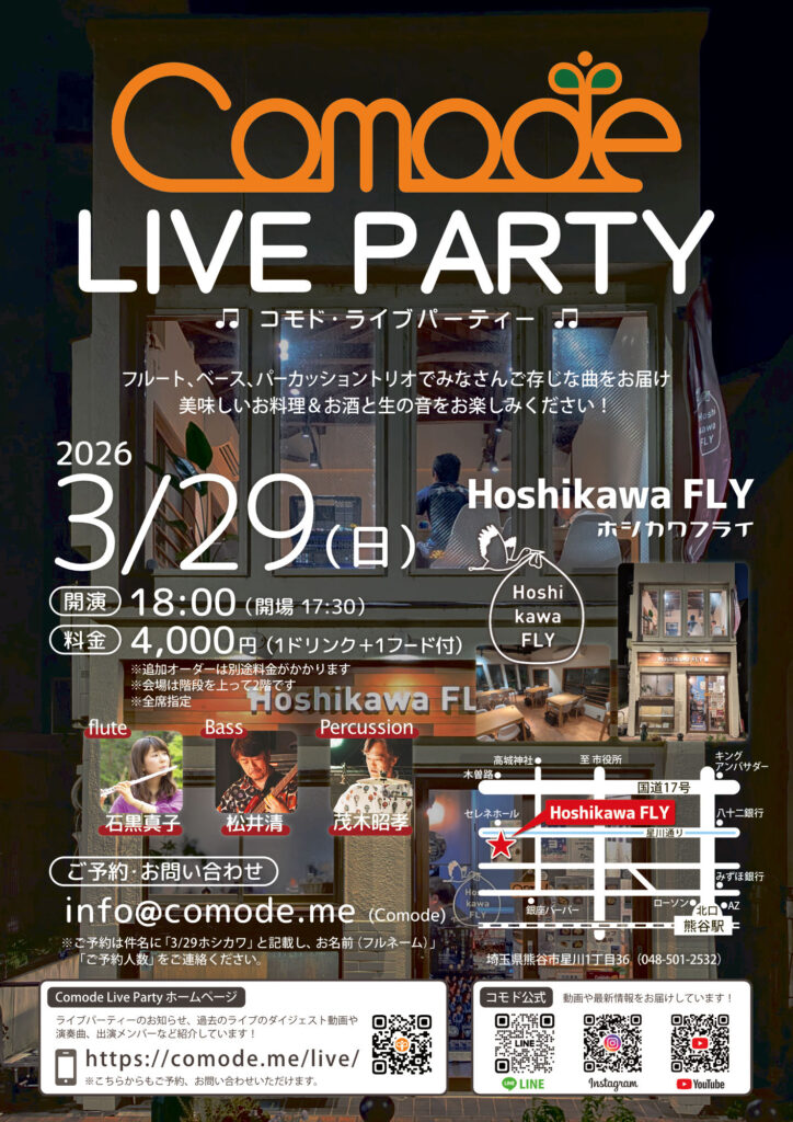 お次のComodeライブパーティーはこちら~ぜひぜひご予約お早めに!!