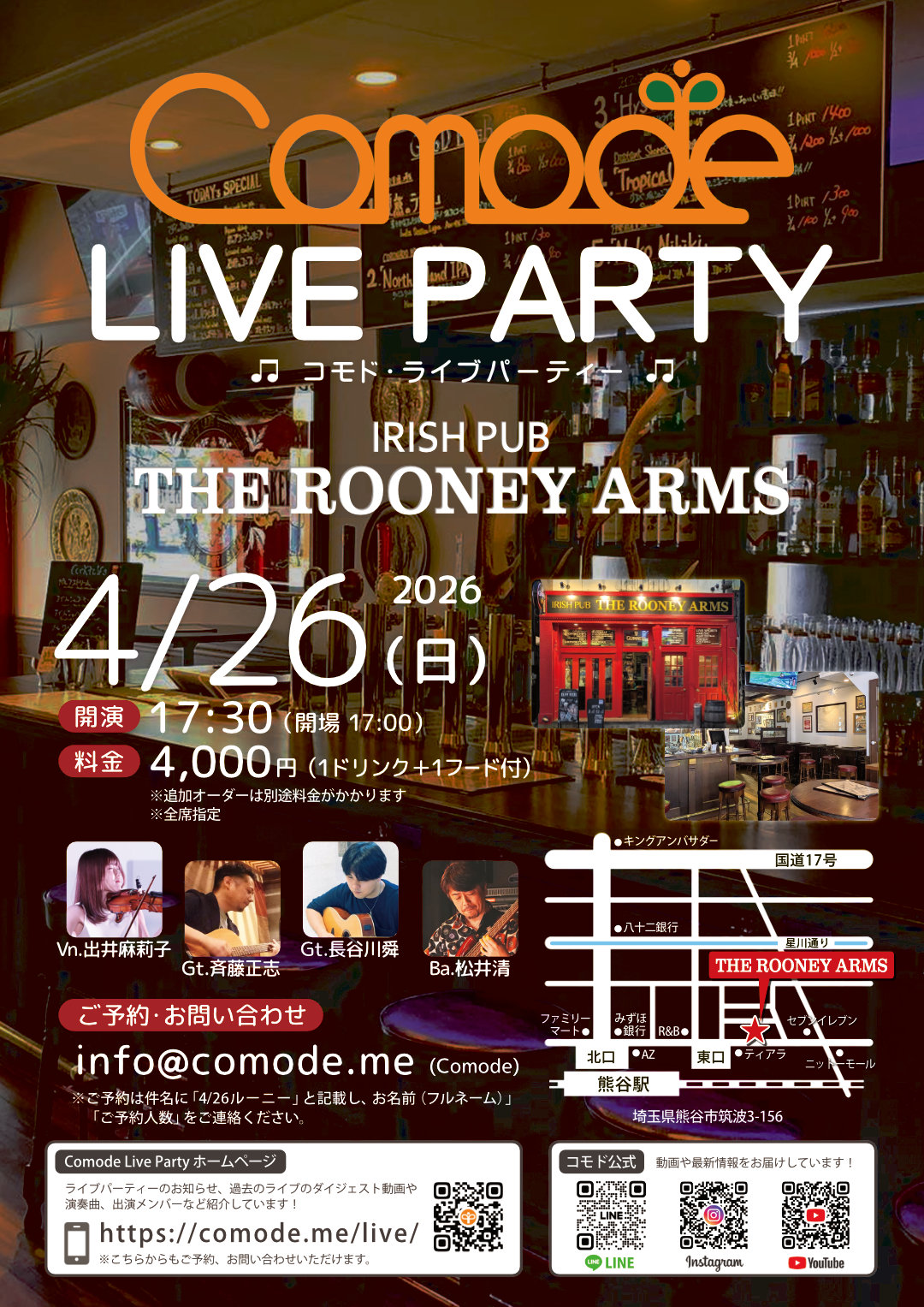 Comodeライブパーティーにも、THE ROONEY ARMSさんにも、またぜひ遊びにお食事しに足を運んでいただけるとうれしいです~ よろしくお願いしまーす♪