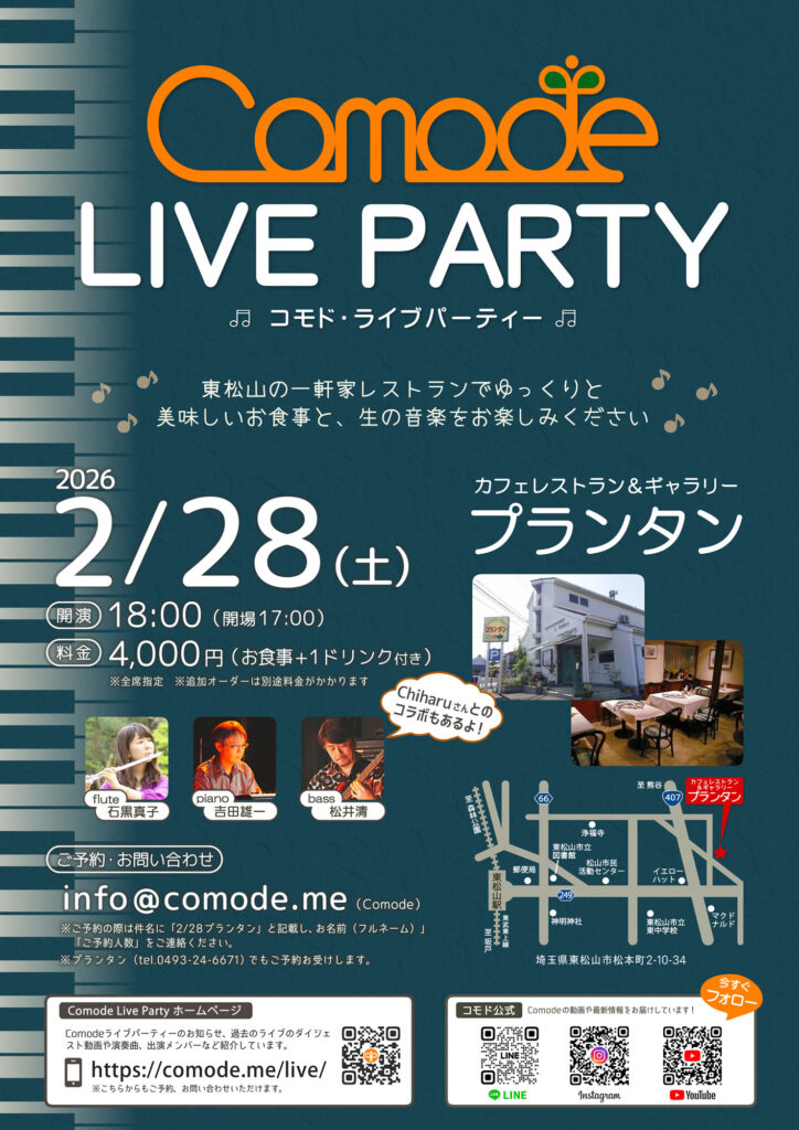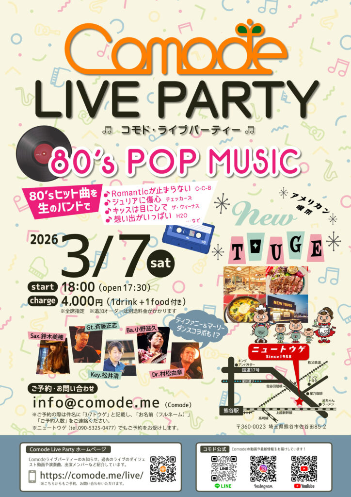 Comodeライブパーティー at B.M.A Living - 2025.1.19(sun)[→リポート]